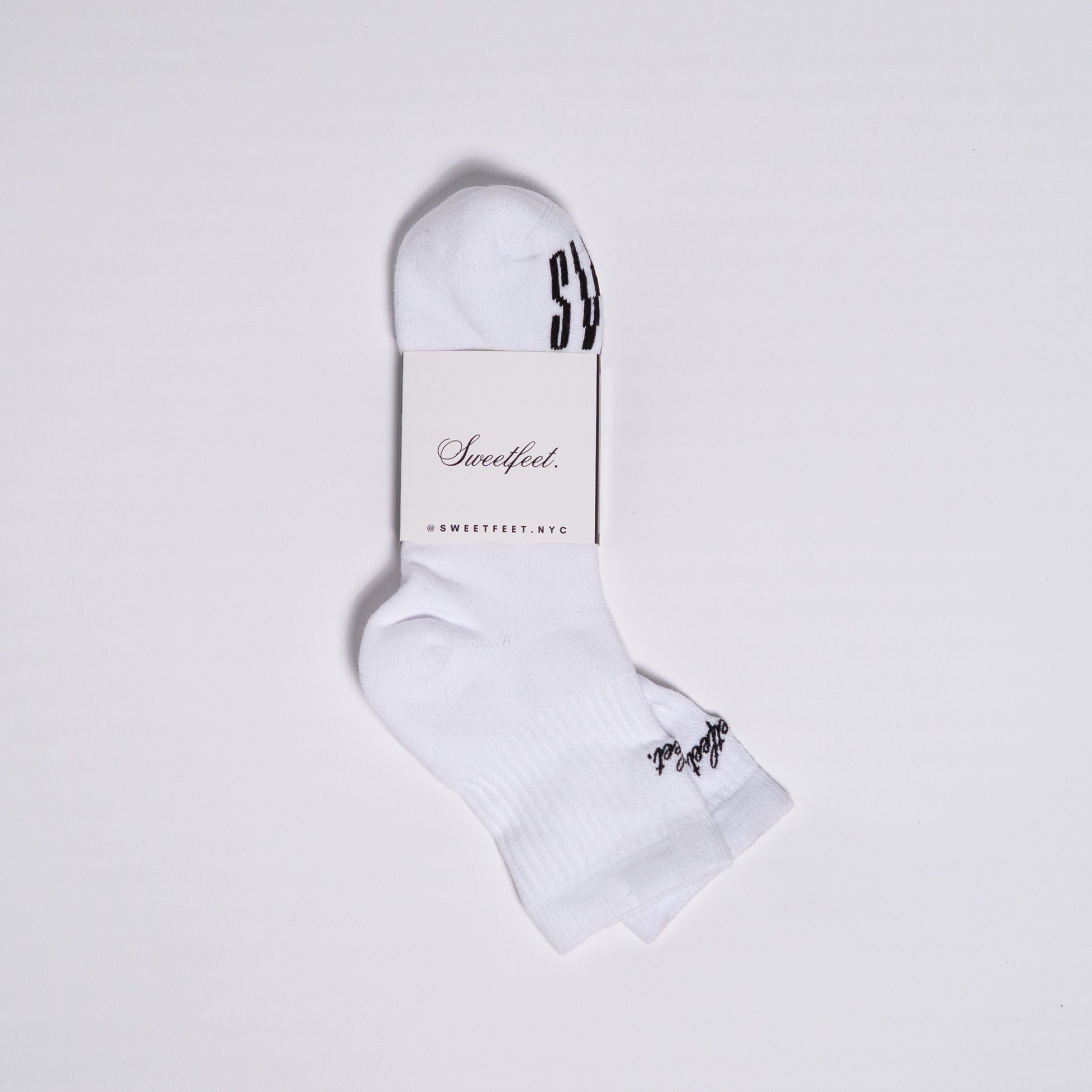 Sweetfeet's very own quarter crew athleisure sock... A thoughtfully designed sock that supports you every step of the way, offering all-day comfort with a super-soft cushion, ventilated arch, and our classic embroidered script logo.