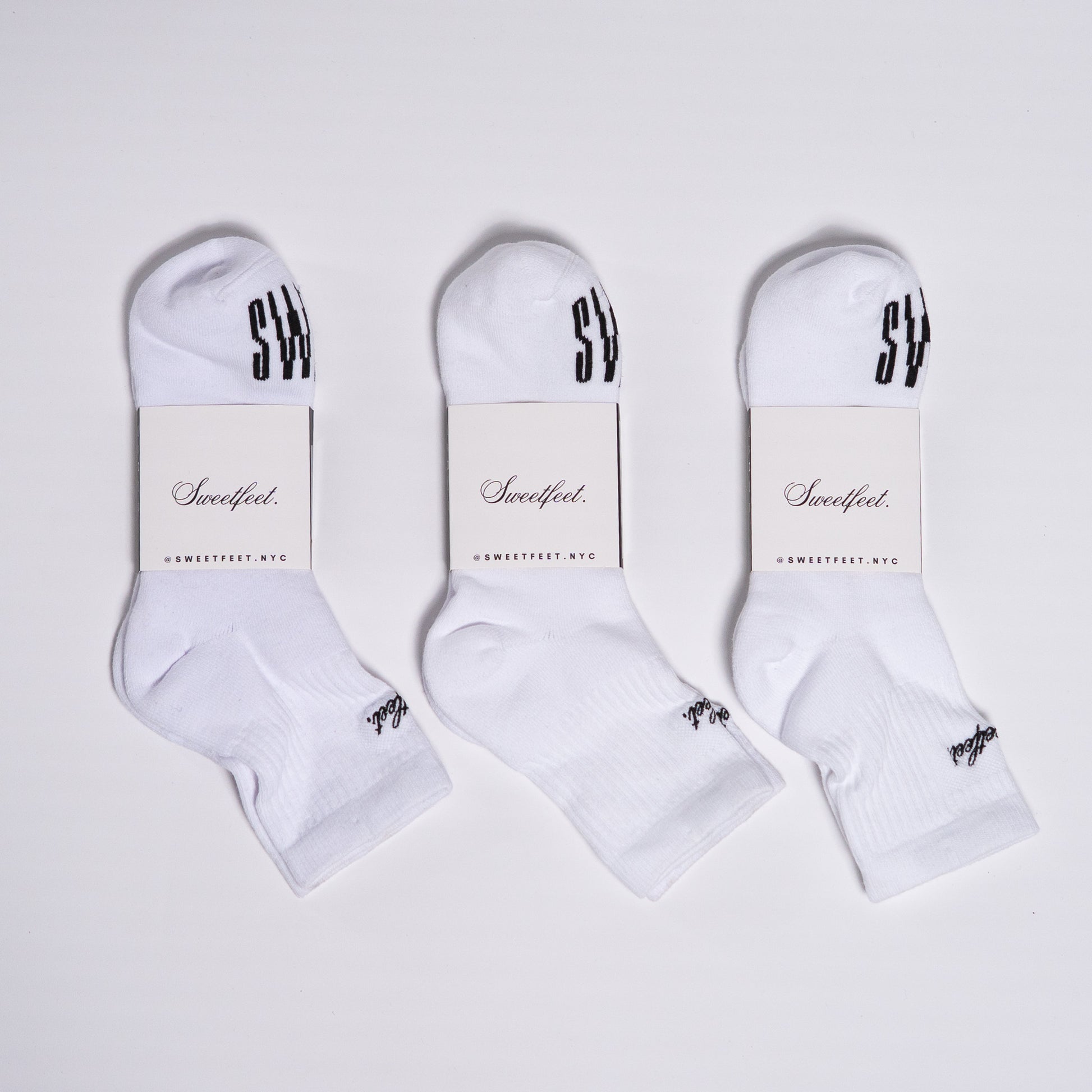 Sweetfeet's very own quarter crew athleisure sock... A thoughtfully designed sock that supports you every step of the way, offering all-day comfort with a super-soft cushion, ventilated arch, and our classic embroidered script logo.